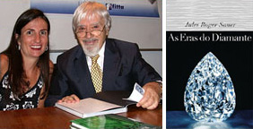 ![]() Jules autografa o livro "As Eras do Diamante" para a Presidente da AJORIO, Carla Pinheiro | Graças a sua atração por esme- raldas ele desenvolveu um trabalho de pesquisa pelo interior do Brasil e, em 1963, consegui provar ao mundo que o Brasil era produtor de esmeraldas. Até então, apesar de séculos de procura, não tinham sido registradas ocorrências da gema no país. O mesmo aconteceu com a desco- |