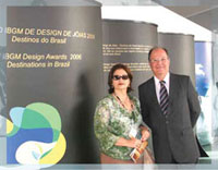 ![]() Angela Andrade e Hécliton Santini na exposição das jóias vencedoras do XIII Prêmio IBGM de Design de Jóias, na RioJóia | Consolidando a parceria entre a indústria da moda e a indústria joalheira, a 27a RIOJÓIA, tradicional feira carioca dos fabricantes de jóias, foi realizada de 7 a 9 de junho, na Marina da Glória, nova sede do Fashion Rio. Nesta edição a RIOJÓIA conquistou um novo e importante espaço: foi incorporada ao Fashion Business, considerada a maior bolsa de negócios da moda brasileira, que recebeu mais de 8 mil visitantes e movimentou R$ 420 milhões no mercado interno. No mercado externo, com a presença de 89 compradores internacionais, a soma chegou a US$ 12,3 milhões. |
